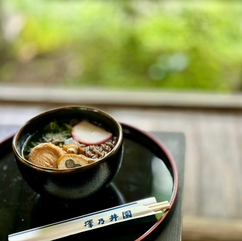 You can enjoy sake and soba while listening to the sound of the river. It is the perfect place to relax in between your explorations.